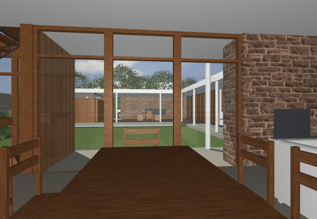 El patio central hizo de articulador entre la galería de acceso, el garaje quincho y la piscina, con las áreas sociales.