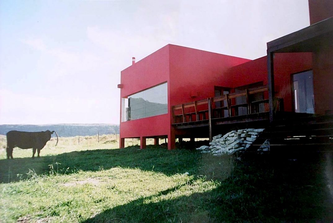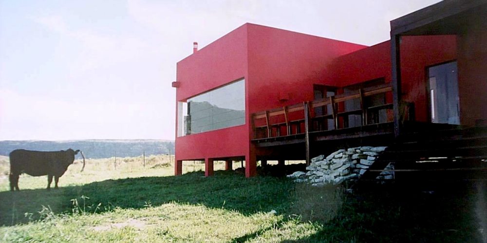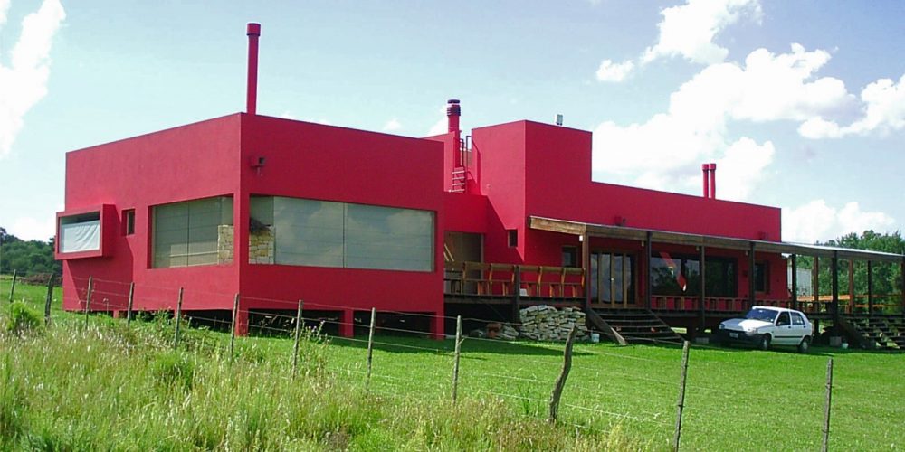 “La Colorada” ubicada en el singular paisaje de las sierras de Balcarce y a los pies de la laguna La Brava, fue concebida como casa de fin de semana.